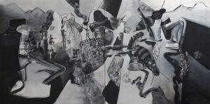 Anflug, 200 x 400 cm, Grisaille, 2016